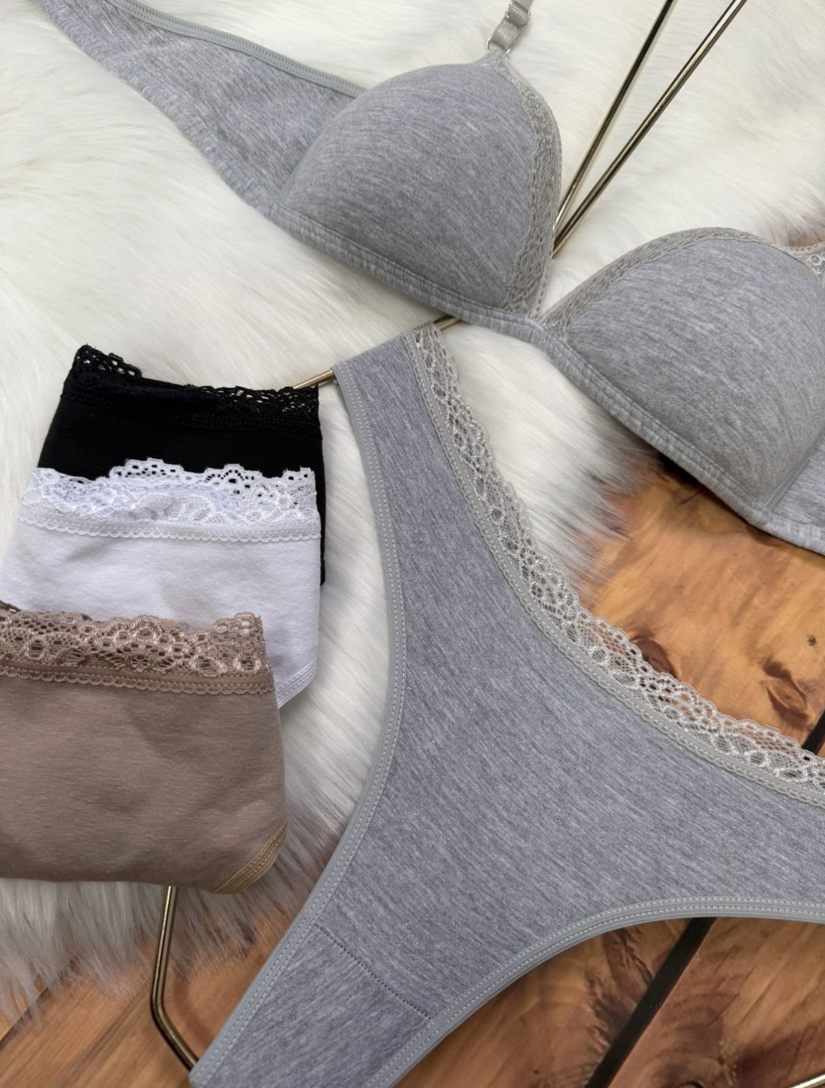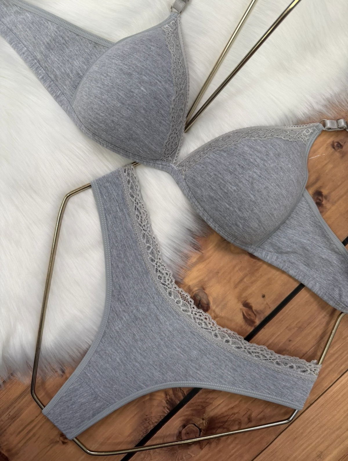 Conjunto triángulo soft de algodón con puntilla
