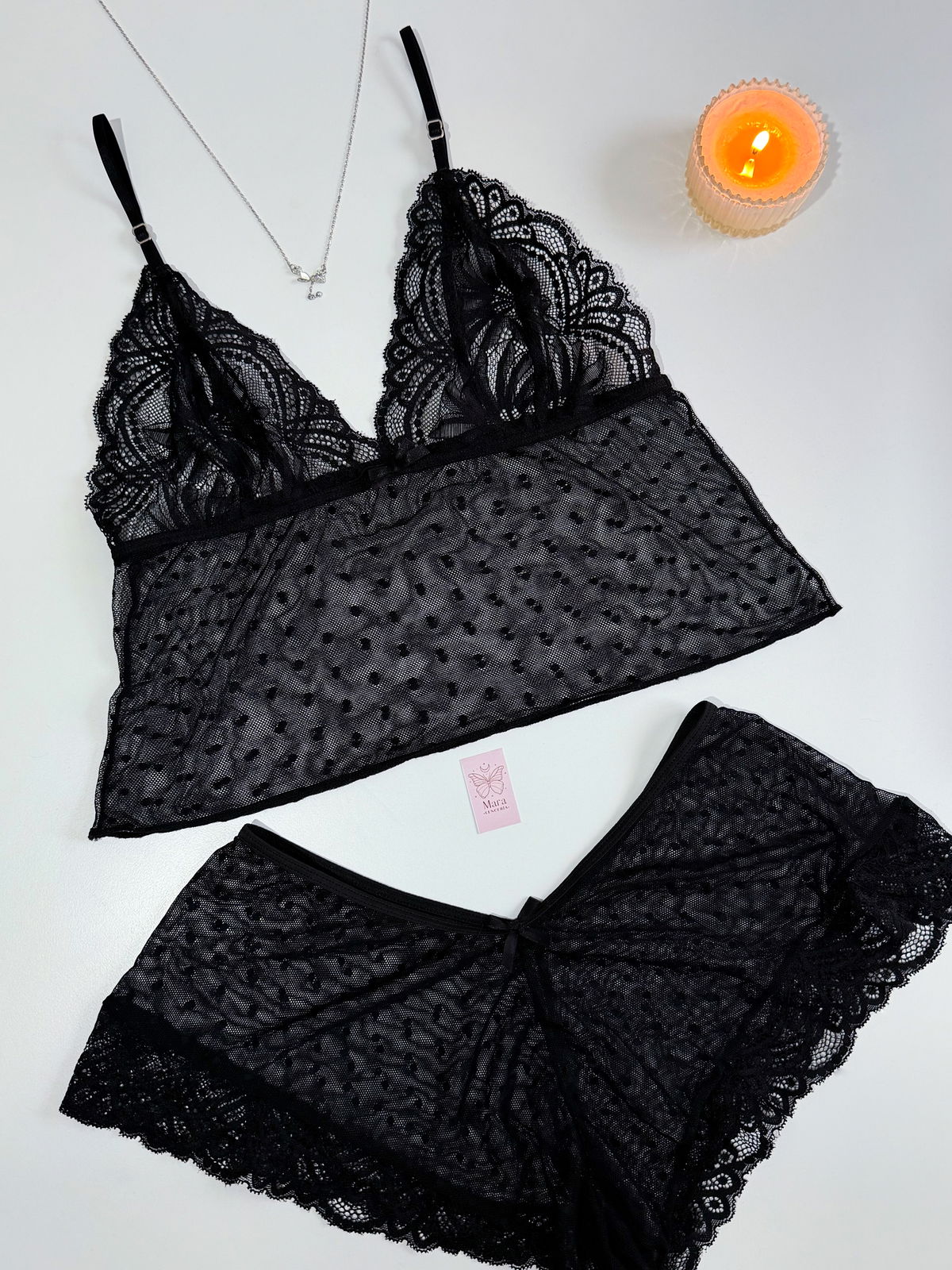 Top y culotte de microtul con encaje