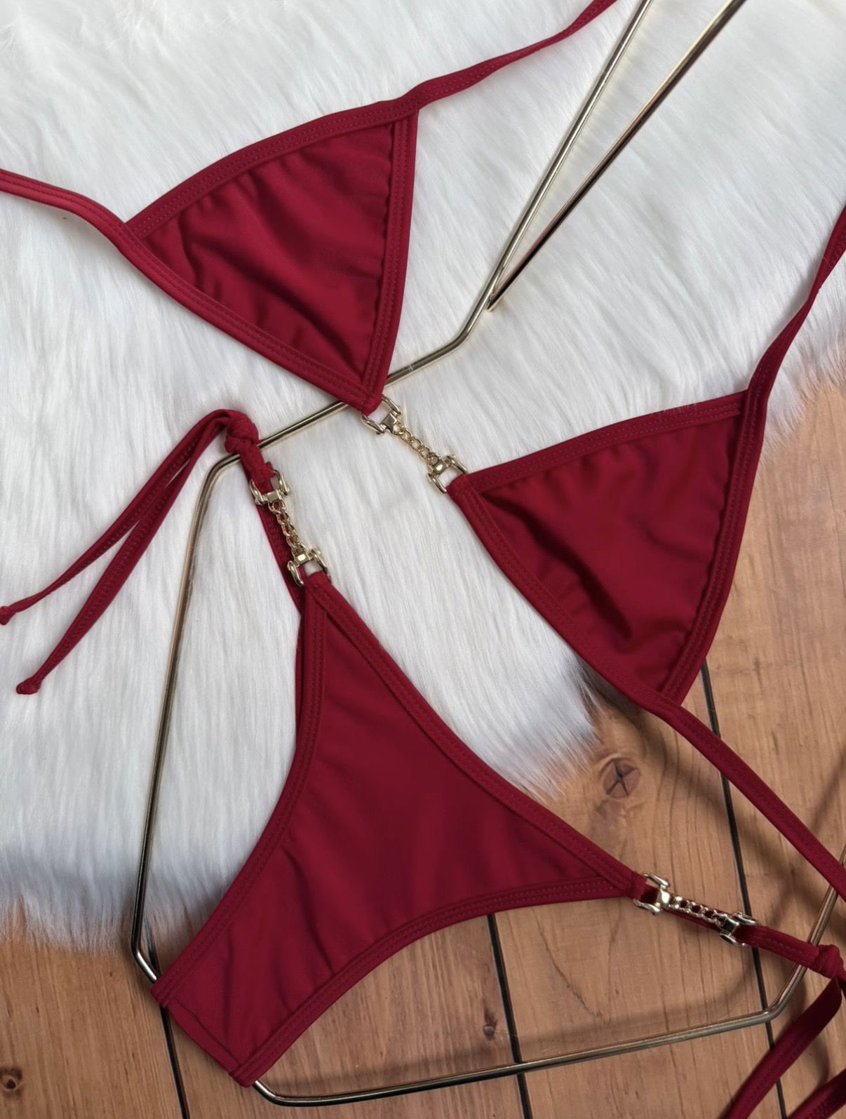 Triángulo y less para atar con cadenita dorada